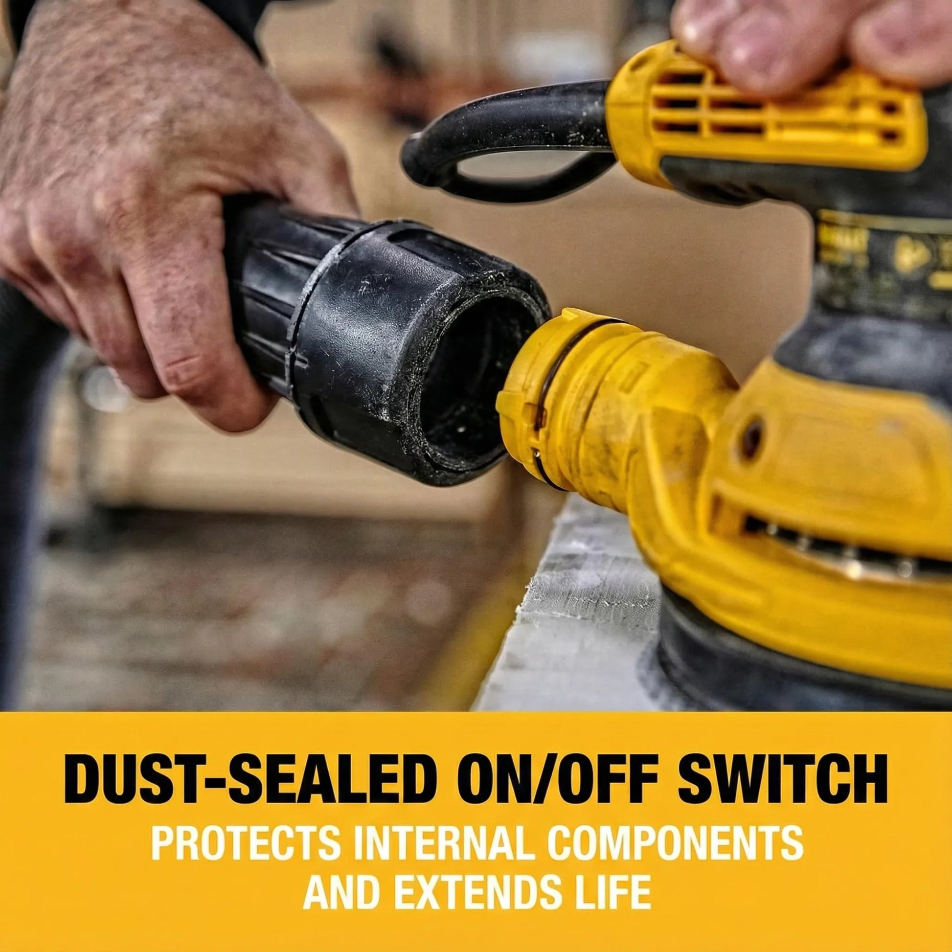 The DWE6423-QS is a compact professional random orbital sander with electronic variable speed control, designed for high-quality finishing on wood and a wide range of materials. It’s built to deliver smooth results while remaining comfortable to use during longer sanding sessions.